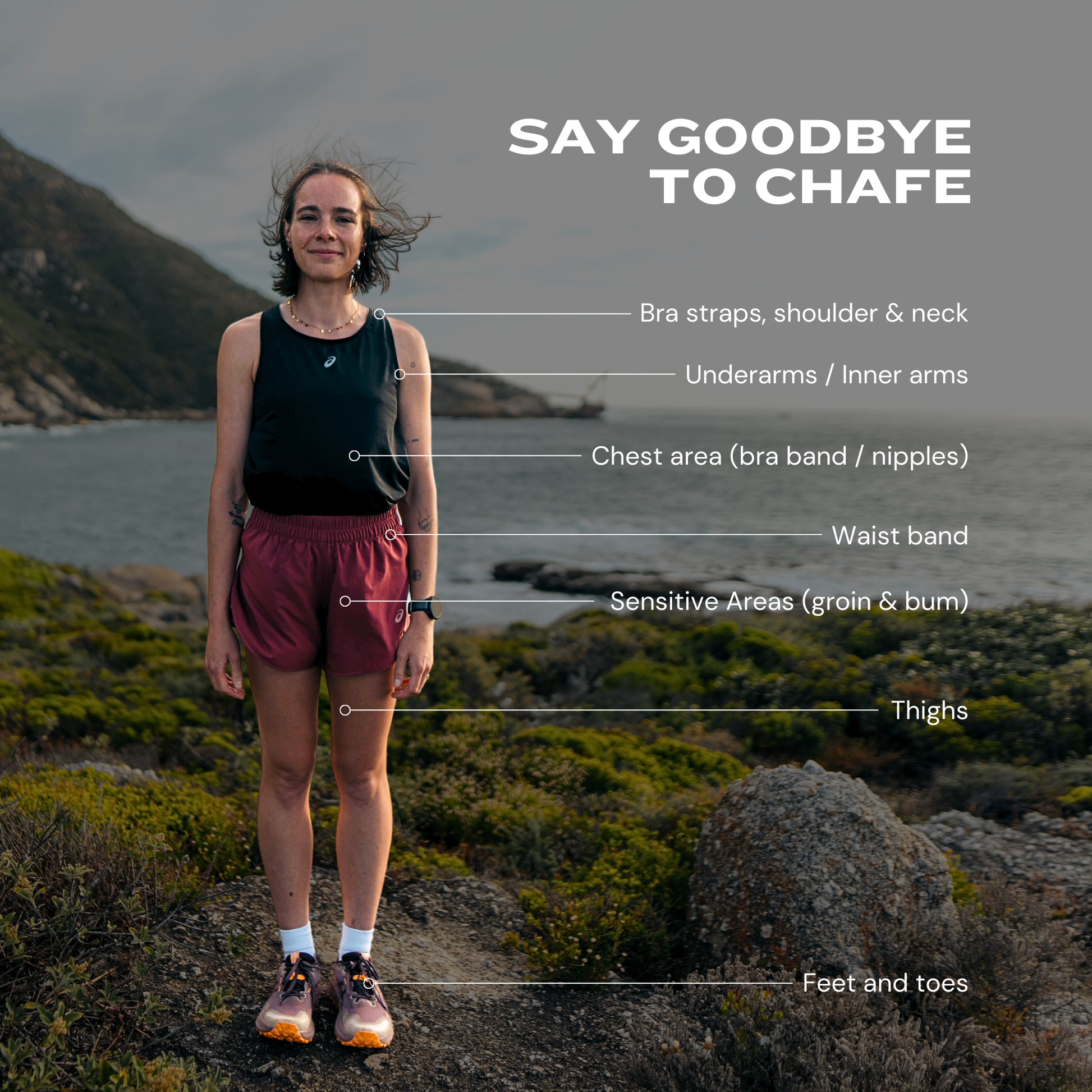 Applying the balm is a clean and effortless process thanks to our convenient stick applicator. Simply twist and glide as much balm as you need to the areas prone to chafing and you're set to enjoy your exercise in absolute comfort.