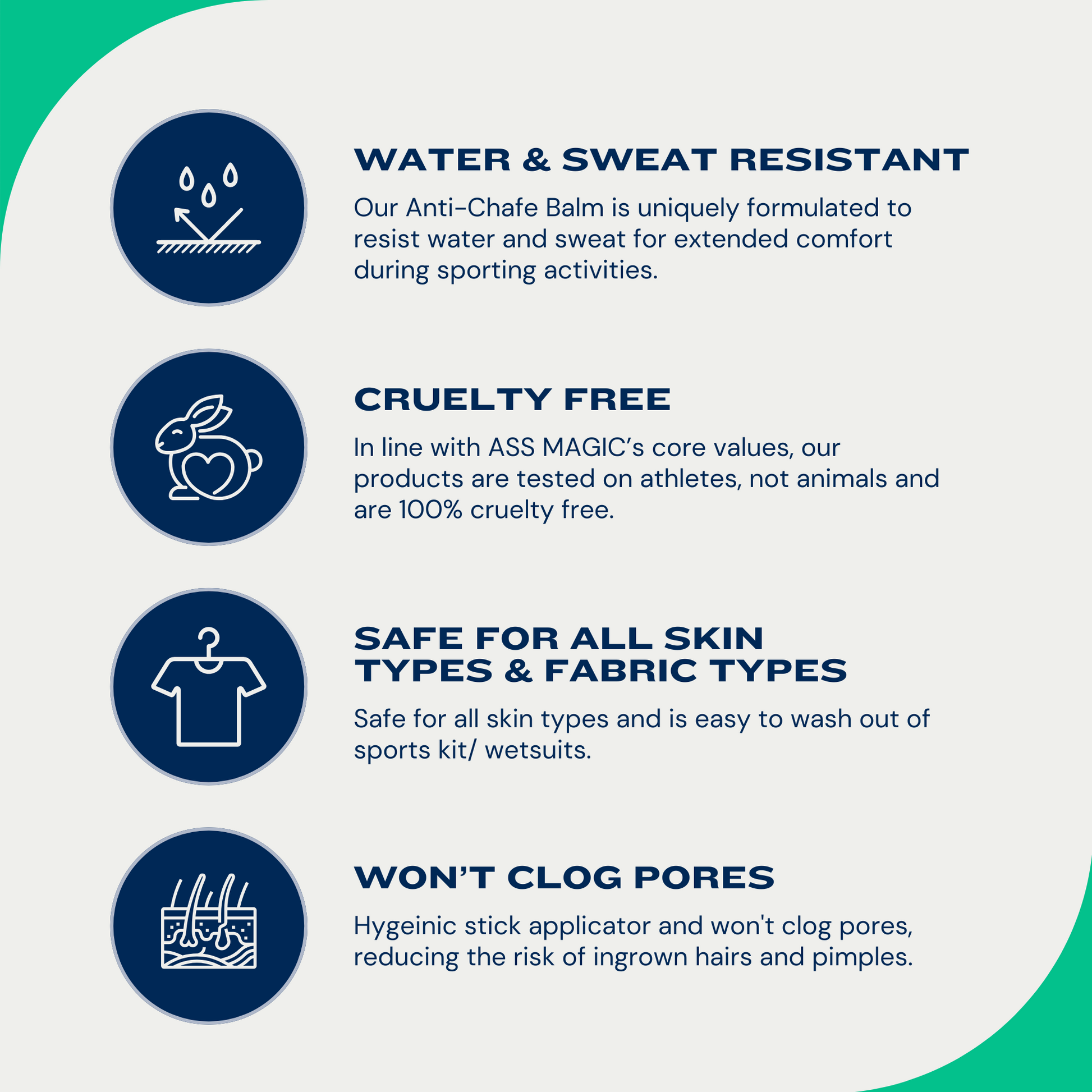 Get your ASS MAGIC Anti Chafe "Mini-Me" Balm today and take your workout comfort to the next level!